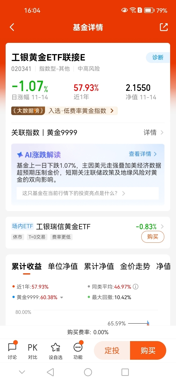 在持有工银黄金ETF联接基金的过程中,我深刻体会到了其稳健与灵活的完美结合。一方面,该基金紧密跟踪金价,能够较好地反映黄金市场的走势,为投资者提供了稳定的收益。另一方面,其持有7天以上即可免赎回费的政策,让投资者在需要资金时能够快速变现,无需承担额外的成本。