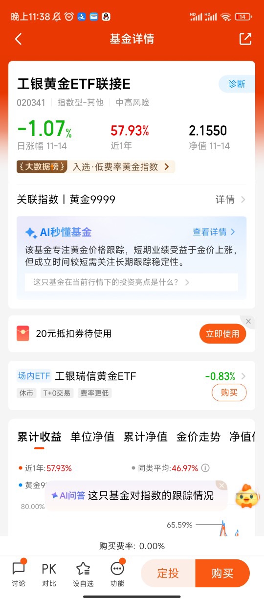 #10月你看好哪些投资赛道?#打卡第十天,$工银黄金ETF联接E$