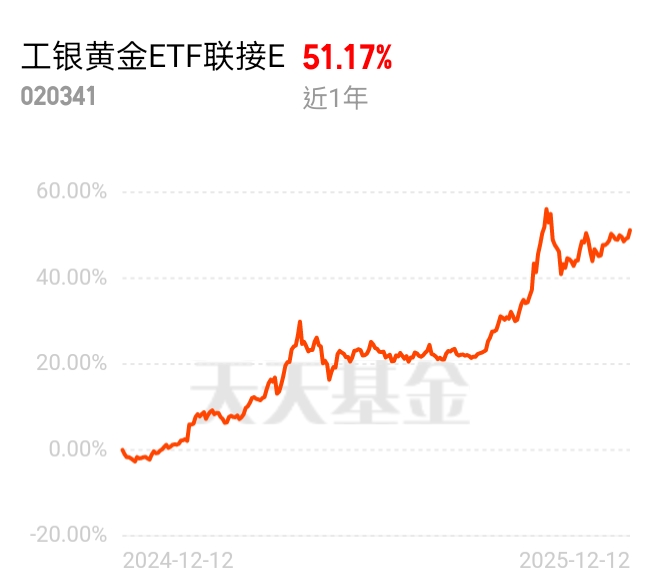 黄金又在猛猛冲高,还好提前买了工银的,费率有优势,适合长期持有,下次给机会多加点。$工银黄金ETF联接E$