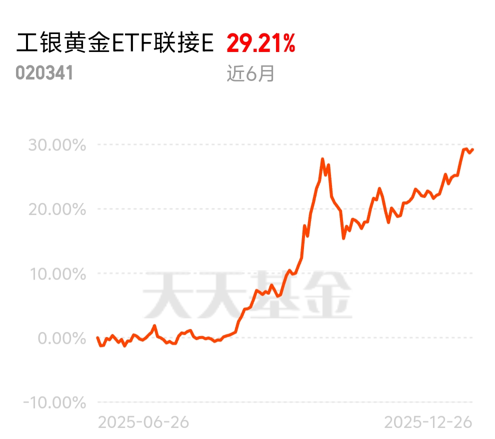 今年黄金涨了70%多,现在4500美元以上,明年可能波动加大。正好这只费率低,7天内赎回免费,适合我这种想长期持有又怕踩错点的人。$工银黄金ETF联接E$