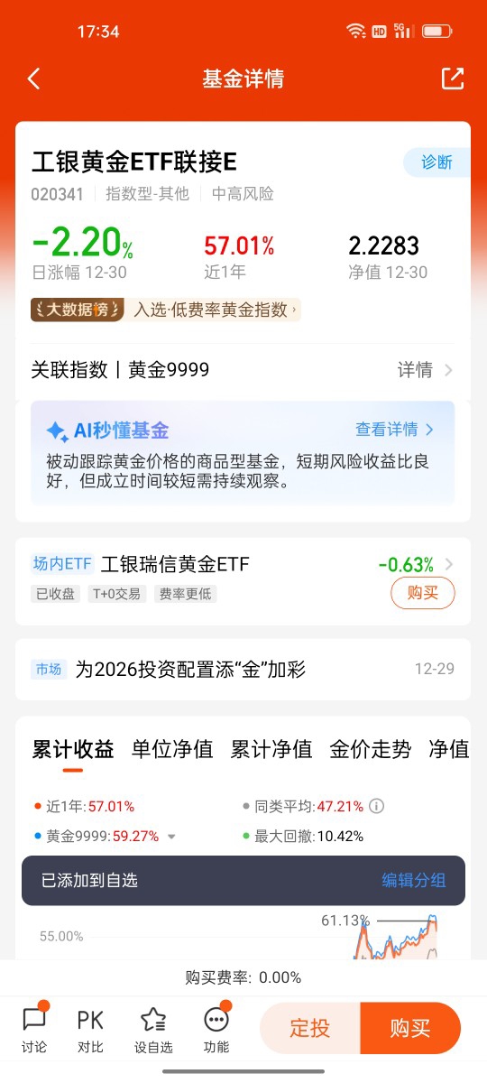 先聊聊黄金这个“全民共识的避险神器”。2025年大家都感受到了,全球局势不太平,地缘冲突、经济复苏节奏忽快忽慢,而黄金却一路涨至历史新高,这正是它“乱世藏金”的属性在发力。对咱们普通人来说,买实物黄金又占地方又难变现,$工银黄金ETF联接E$完美解决了这个问题——低门槛就能参与,还能精准跟踪黄金价格走势。