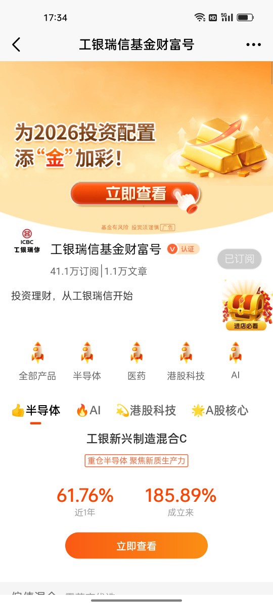 其实投资没有那么复杂,关键是找对方向、做好配置。2026年的市场,既需要黄金这样的“稳健压舱石”,也需要稀有金属这样的“刚需潜力股”,更离不开新能源车电池这样的“成长排头兵”。工银瑞信的这三只基金,刚好形成了“避险+刚需+成长”的三维配置,既能抵御市场波动,又能捕捉产业红利,完美契合普通投资者的财富增值需求。相信只要跟着趋势走,合理搭配,2026年的财富之路一定能越走越宽,让每一份期待都能收获实实在在的回报!