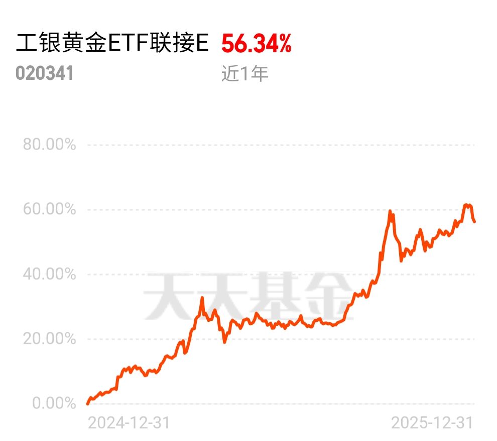 一键布局黄金,推荐工银瑞信基金公司的:$工银黄金ETF联接E(OTCFUND|020341)$,本基金紧密跟踪上海黄金交易所9999黄金现货价格走势,管理费+托管费合计为同类最低一档,E份额持有7天(含)以上免收赎回费用,入选低费率黄金指数榜单。10元起购,交易灵活,2025年收益率达到56.34%。一支黄金主题的基金,受到投资者的高度关注!@工银瑞信基金