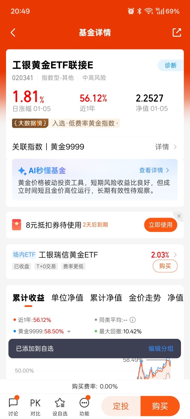 黄金涨得可能慢,但稳当。主要作用是保本、抗风险,让你的投资组合别的大跌时,它能撑住。