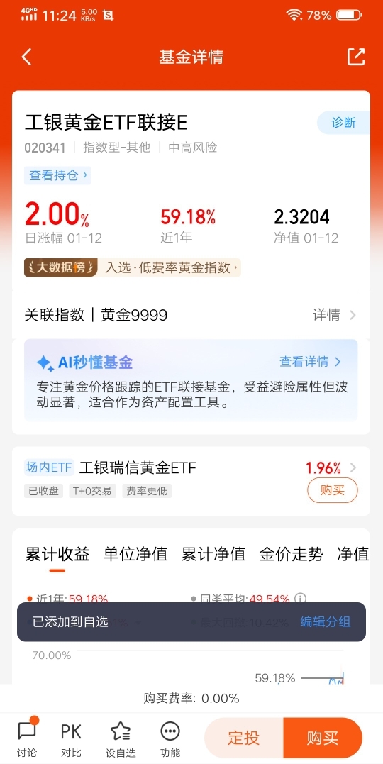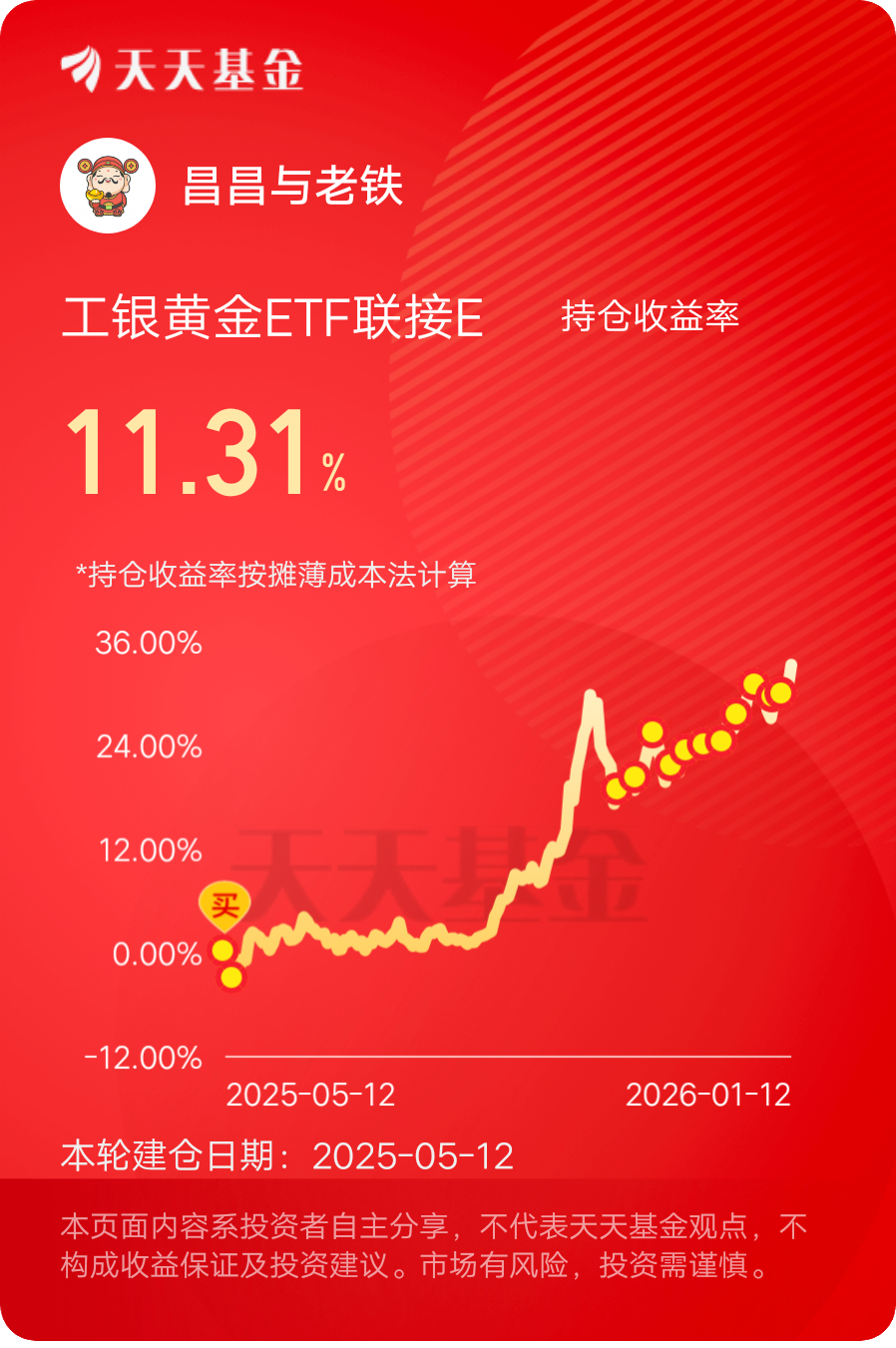 $工银黄金ETF联接E$ #晒收益#