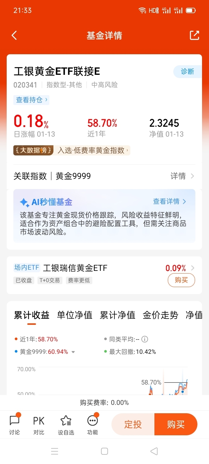 基于以上分析,我决定长期持有工银黄金ETF联接E。长期投资不仅能够平滑市场短期波动带来的影响,更能充分捕捉黄金市场的长期上涨趋势,实现资产的稳健增值。我相信,在专业投资团队的精心管理下,工银黄金ETF联接E将继续保持稳健运行,为投资者创造更为丰厚的回报。
