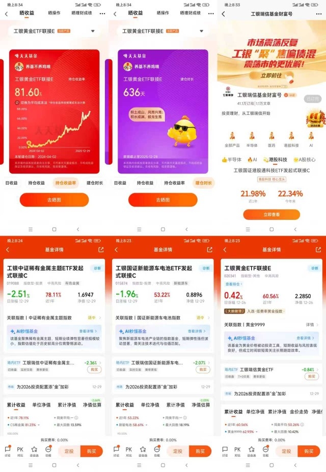 2026年市场环境仍存不确定性,黄金凭借天然的抗风险属性,成为强化组合韧性的关键配置项。对普通投资者而言,实物黄金变现折损高、管护成本大,标准化的黄金基金更适配需求,工银黄金ETF联接E(020341)便是我亲测优质的标的。