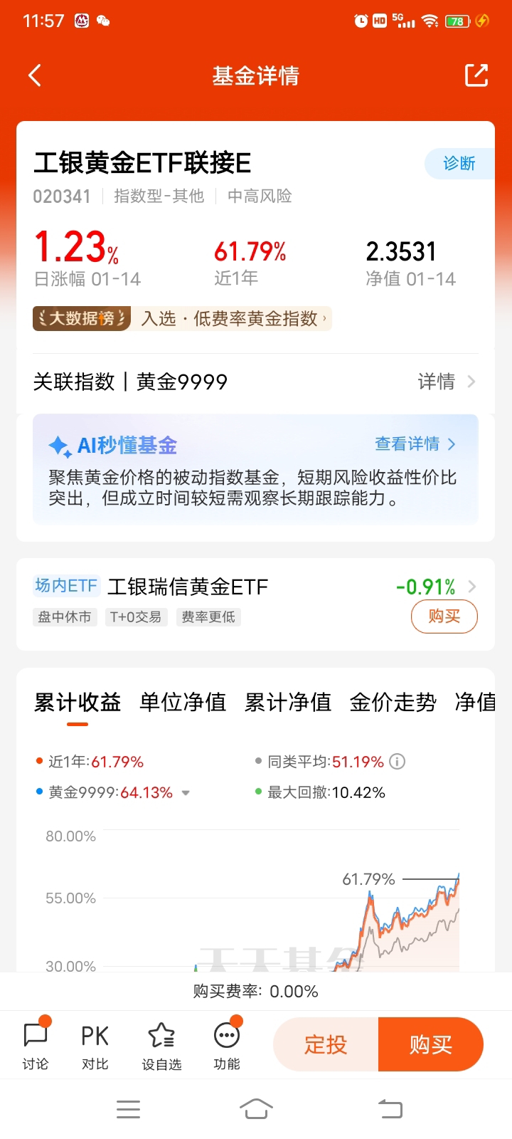 我非常看好$工银黄金ETF联接E$这款产品,当下黄金的配置价值格外突出,短期资金