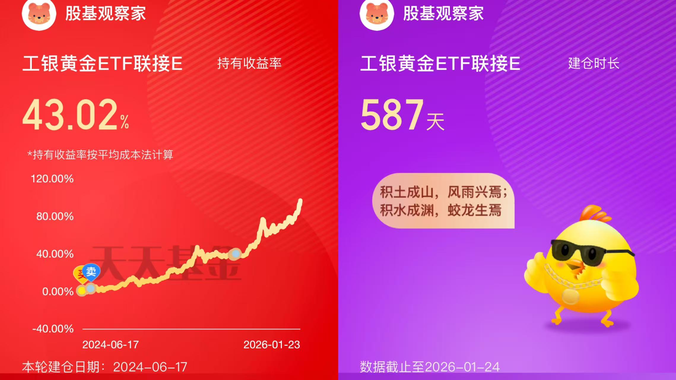 工银瑞信基金本身就是我最欣赏的基金公司,2005年成立以来,目前管理基金达到493只,基金经理89人,堪称业内翘楚。我对于工银瑞信基金的产品都是非常熟悉的,早在一个多月前就申购了工银瑞信基金的焦文龙和何顺经理的工银聚享混合C(011730),短短一个月就获得了7%的投资收益,体验良好。同时,我还在1年多前就申购了赵栩经理的工银黄金ETF联接E(020341),587天就同样涨幅巨大,对工银瑞信基金可谓长情。