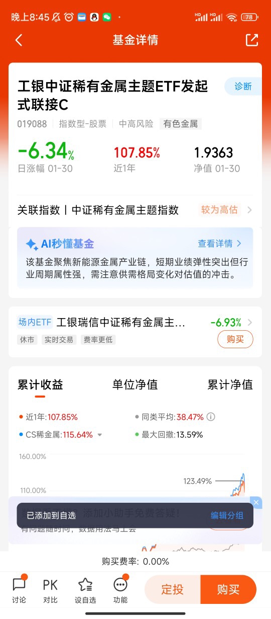 费率层面,工银黄金ETF联接E的管理费率、托管费率处于行业较低水平,长期持有能有效节约成本,叠加基金运作的专业性,相比个人直接参与黄金现货交易,省去了交易手续费、仓储费等额外支出,提升了投资性价比。对于没有时间盯盘、缺乏专业大宗商品分析能力的普通投资者,这款基金无需关注矿山产能、央行购金数据、国际利率波动等细节,只需把握黄金长期上行的大趋势,通过长期持有或定投分享金价上涨的红利。