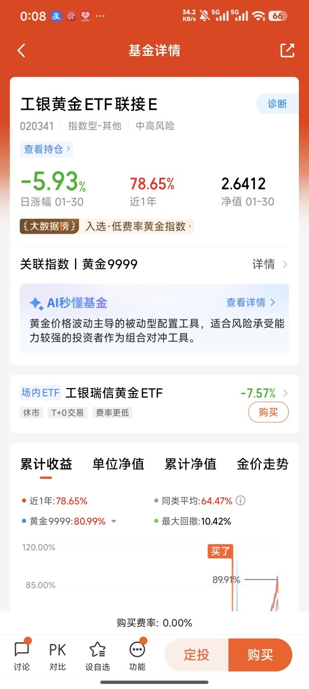 在稀贵金属迎来结构性牛市的背景下,对于普通投资者而言,如何高效、便捷地参与其中,把握这一波投资机遇?直接参与贵金属期货交易,门槛高、风险大,还需要面对复杂的交易规则;购买实物黄金,又存在保管成本高、流动性差的问题。而黄金ETF联接基金,无疑是普通投资者布局黄金赛道的最优选择之一,工银黄金ETF联接E 更是凭借其产品优势,成为投资者锚定黄金价值、分享稀贵金属牛市红利的优质工具。