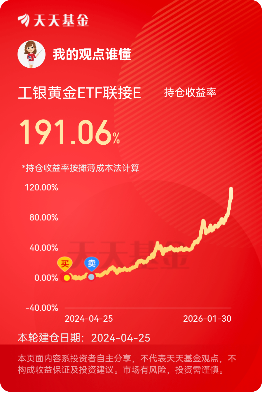 因此我选择了工银黄金ETF联接E(020341),因为工银瑞信基金在投资方面相当的专业。@工银瑞信基金