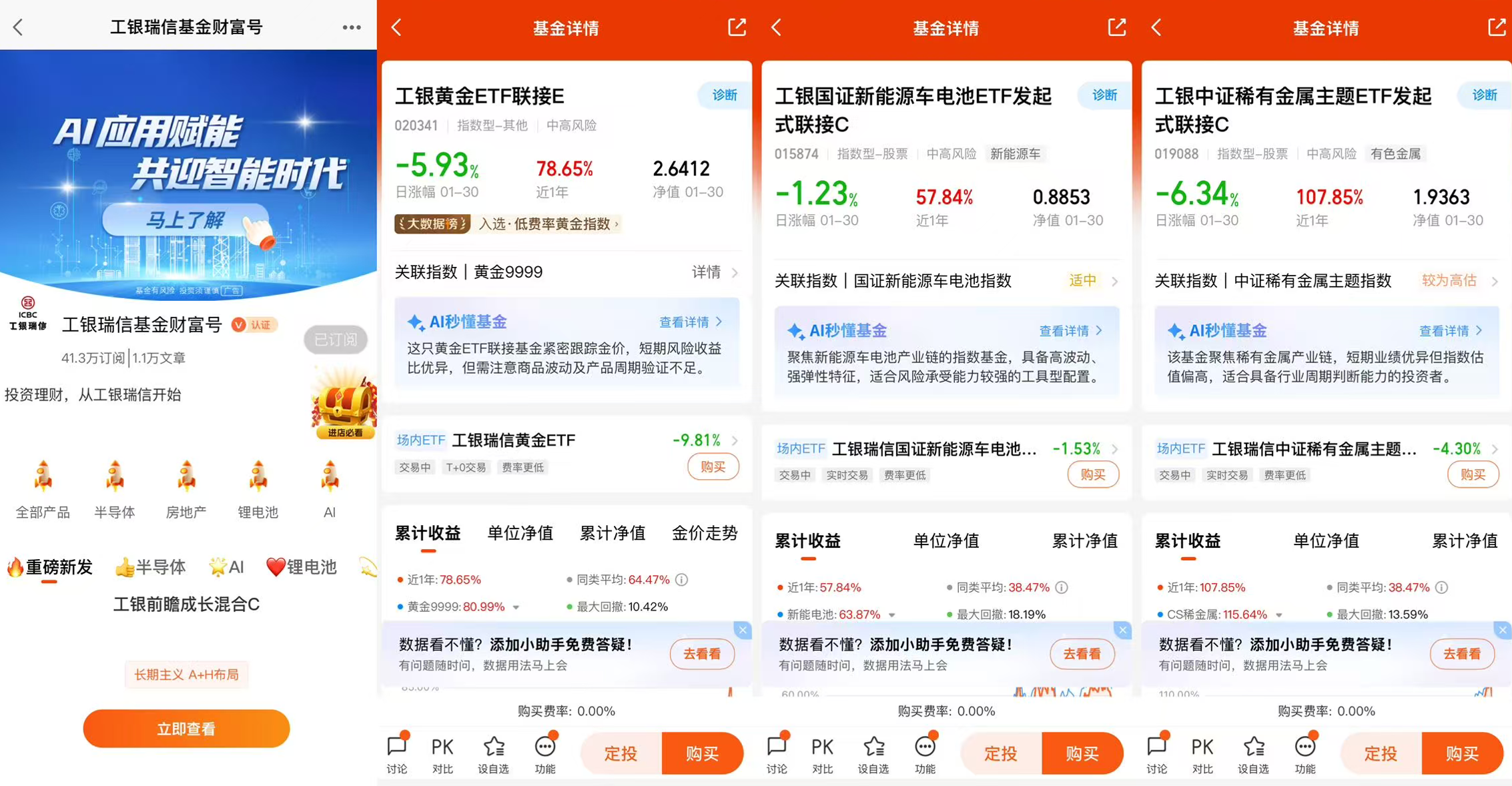 $工银黄金ETF联接E(OTCFUND|020341)$ $工银国证新能源车电池ETF发起式联接C(OTCFUND|015874)$ $工银中证稀有金属主题ETF发起式联接C(OTCFUND|019088)$