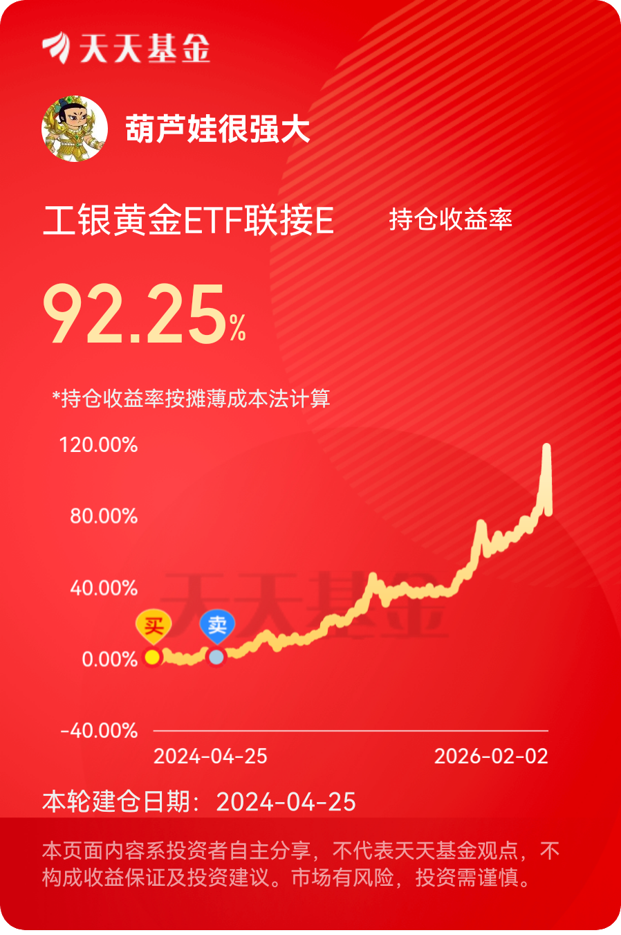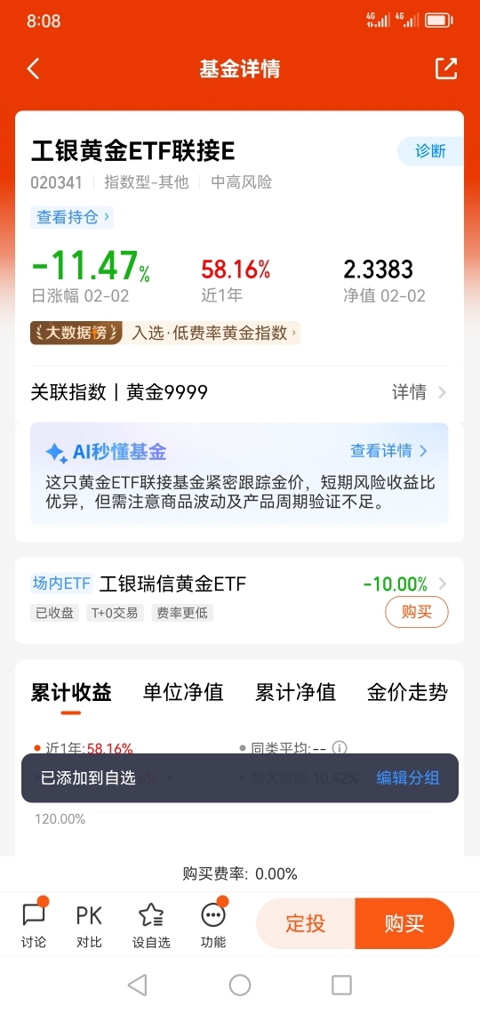 在经过以上认真的思考之后,我持有的是工银黄金ETF联接E(020341),因为它的长期业绩表现是有目共睹的。@工银瑞信基金