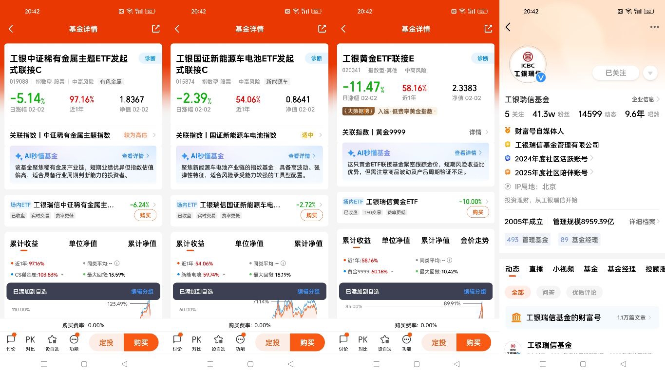 2026年1月29日,现货黄金在触及5591美元高点后,30分钟内暴跌450美元,随后持续回调至4500美元下方,这场“史诗级”闪崩让市场陷入巨大分歧 。有人将其视为泡沫破裂的前兆,也有人认为是逢低布局的良机。事实上,黄金是否值得投资,关键在于投资者的风险偏好与投资周期;而$工银黄金ETF联接E$ 作为市场主流的黄金投资工具,其适配性需结合不同投资需求具体分析。