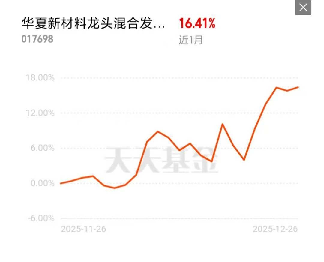 2026年我布局核心板块就是新材料了,这基近期收益太牛了,近1周收益超11%,排名很靠前,$华夏新材料龙头混合发起式C$布局都是AI算力发展的硬件上游新材料,发展前景真不错,弹性也大,反弹起来真的强