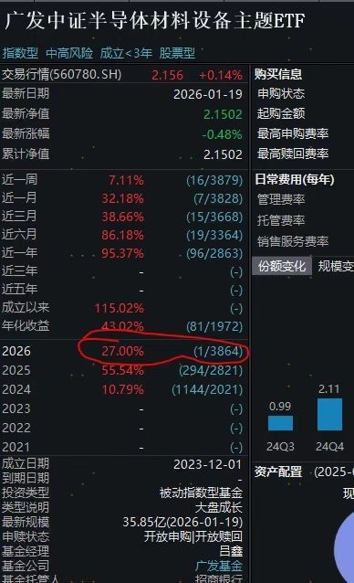 广发中证半导体材料设备ETF发起式联接C近一个月都29%的收益了,是今年场内涨幅