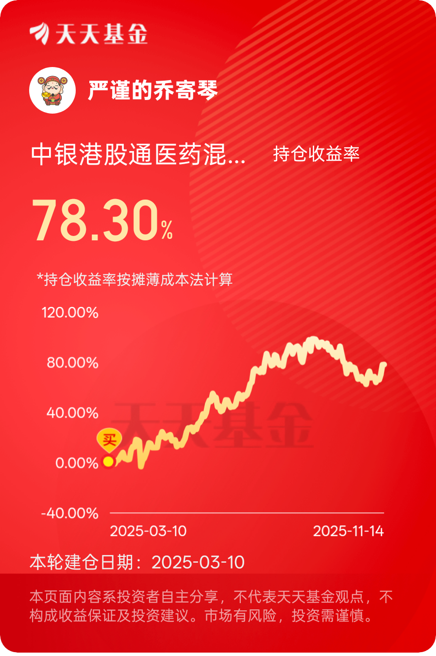 三连涨小口吃肉也是肉,创新药这几天还算给力的$中银港股通医药混合发起A$ #晒收益#