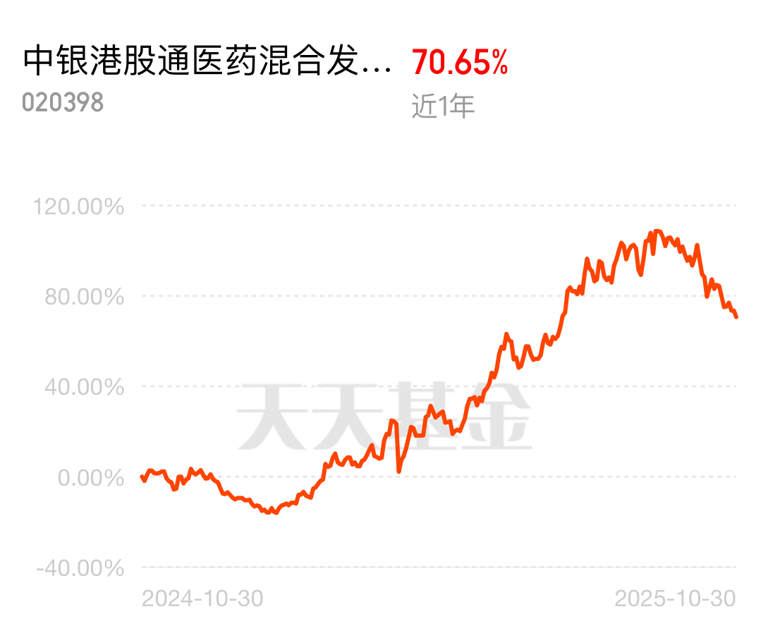 中银港股通医药,是我之前操作的医药基金里,表现很强的一只,近一年涨幅70.65%,大幅跑赢医药基准指数和同类平均,所以今天我打算操作医药的时候,就直接拿它来操作了。