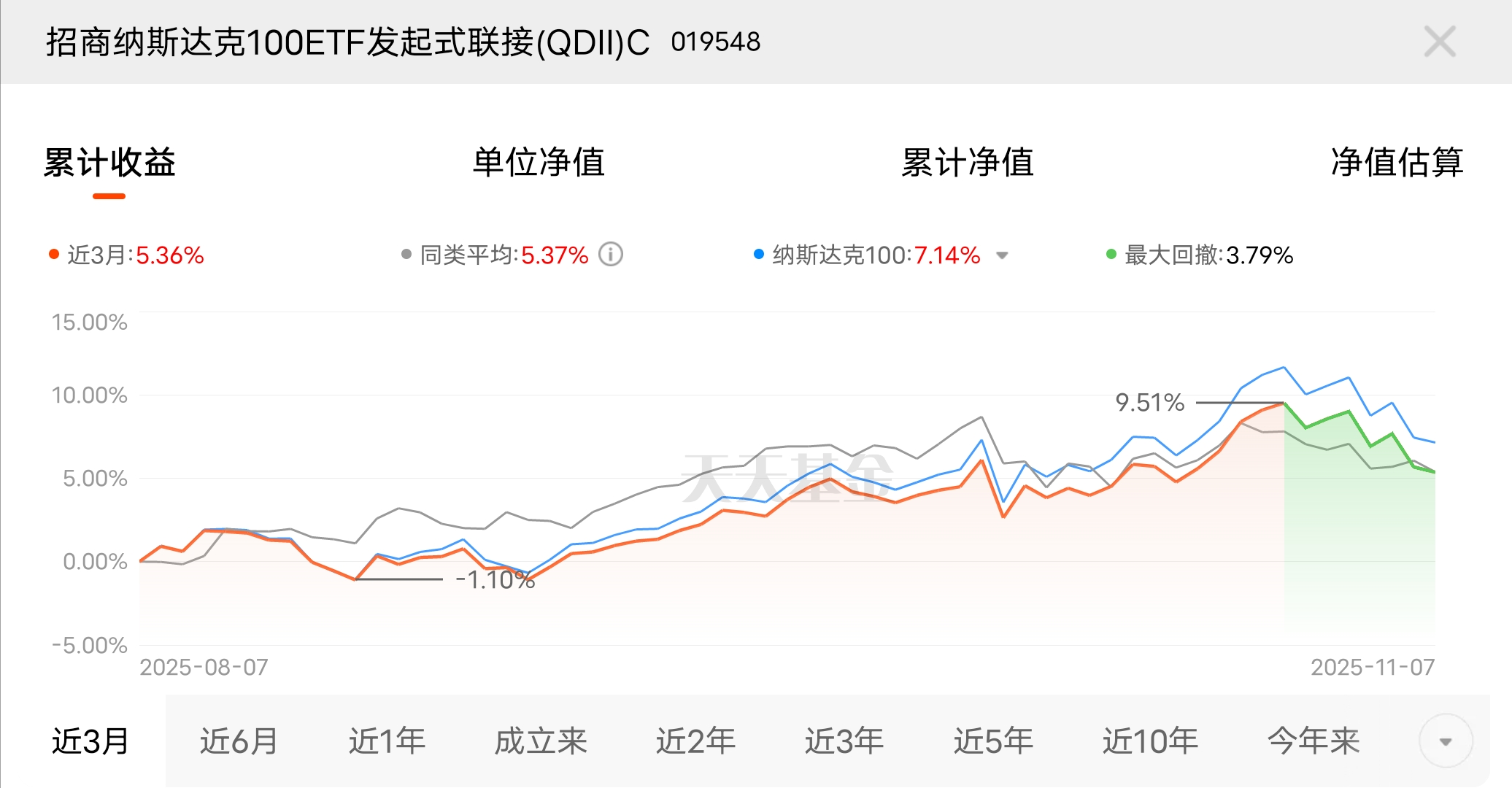 美股最近涨得红火,三大指数同步攀升,核心是美政府停摆有望本周末结束。招商纳斯达克100ETF联接(QDII)C近3个月收益5.36%,最后一天单日1000可投,错过没机会。