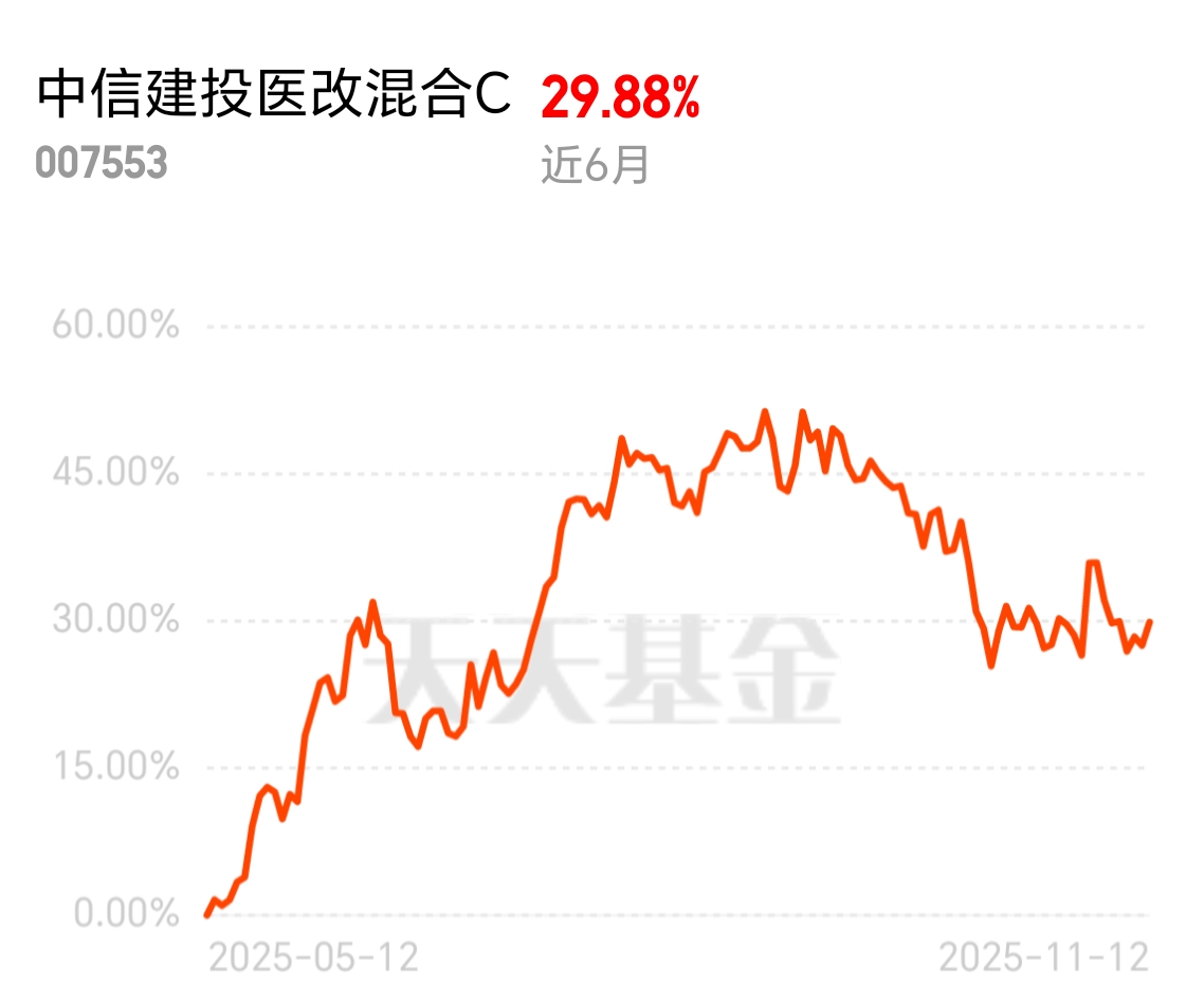 昨天涨近2%,医药板块有点动静了,这边拿中银港股通医药C的也在也配了点中信建投医改C,看重它押注创新药和出海这些长期方向,跌久了反而敢看看机会。