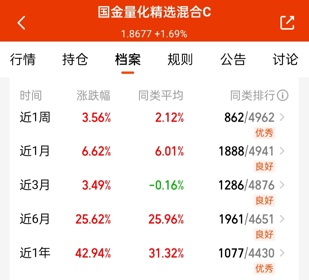 今天创业板还是跌呢,$国金量化精选混合C$限额放开了抓紧补起来,各阶段业绩都不错