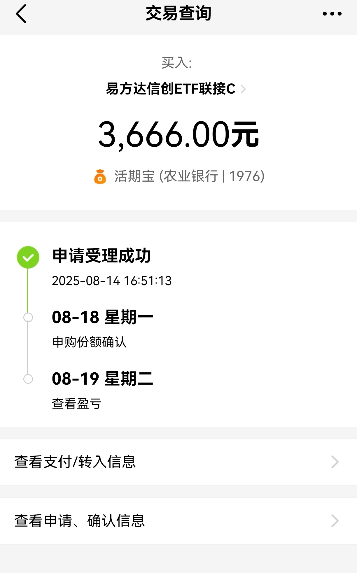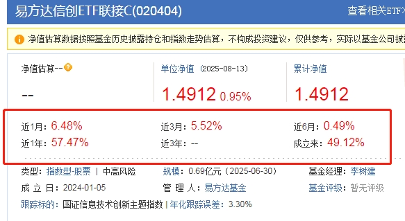 近期华为发布“AI推理加速黑科技”,看来后面信创行情真要来了,今天看$易方达信创ETF联接C$ 信创指数逆市上涨,这种明确的主题行情还是通过指数投更加准确。随着国常会定调推进“人工智能+”,后面回调的话,更可以加大投入力度,今天先加3666元,这只基业绩确实可圈可点,近一年反弹超57.47%,趁才反弹先加为敬。