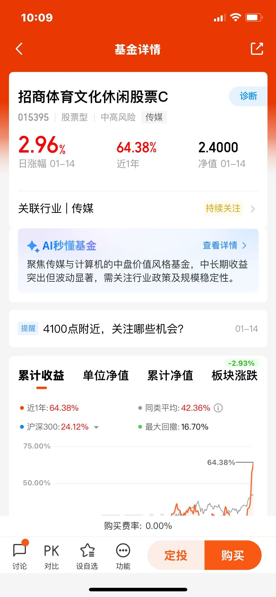 $招商体育文化休闲股票C(OTCFUND|015395)$昨天上涨2.96%,爆发强,起跳高