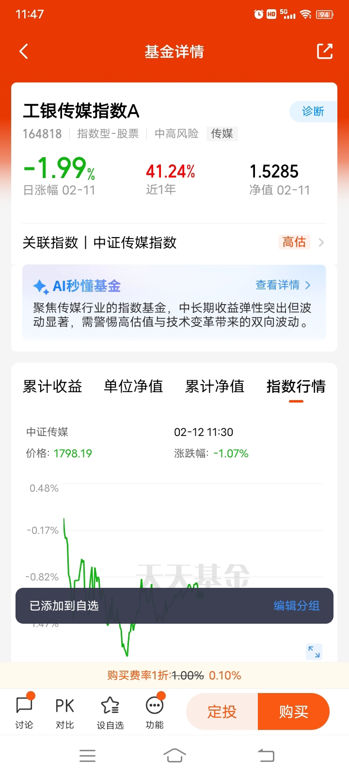 对于工银传媒指数E,我觉得更适合作为行业配置的工具,而不是单一押注的标的。如果看好传媒行业的复苏和AI赋能,用指数基金来布局,既能分散个股风险,又能享受行业成长的红利。操作上,我可能会考虑分批定投,而不是一次性梭哈,毕竟板块波动大,定投可以平滑成本,也能更好地应对短期波动。