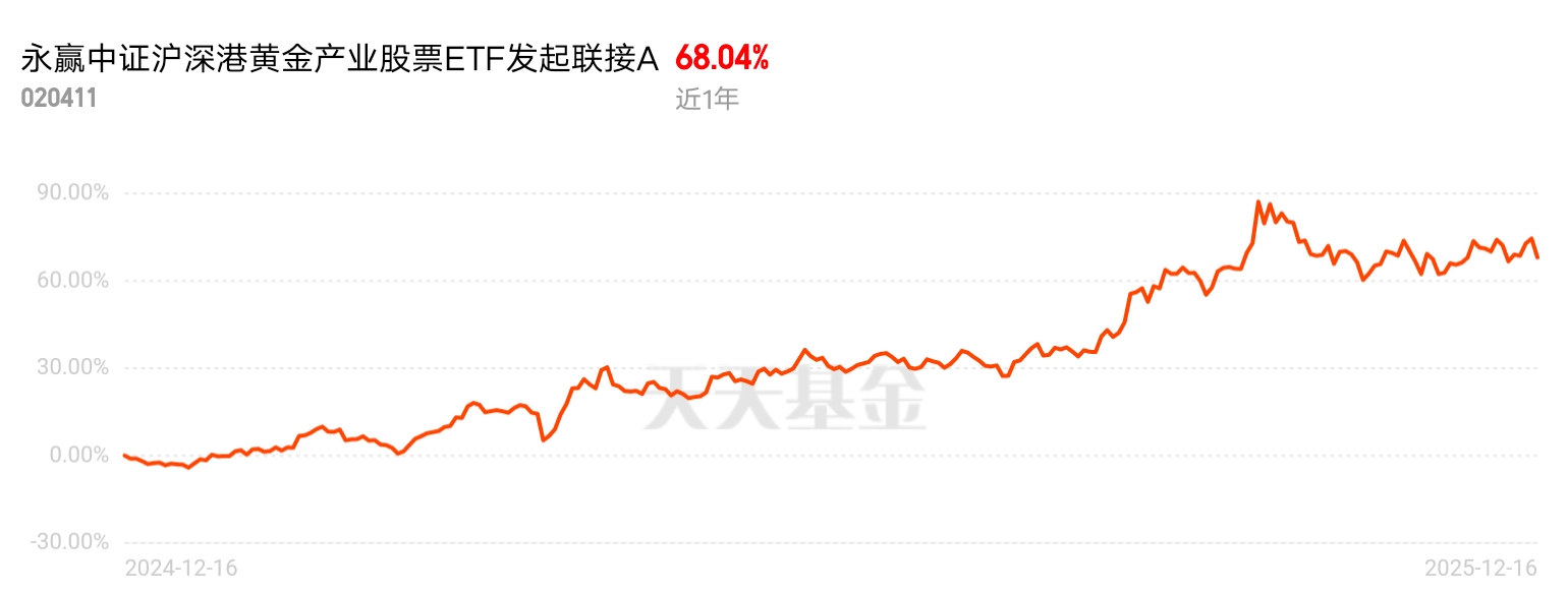 $永赢中证沪深港黄金产业股票ETF发起联接A$ 长期业绩不错,弹性也可以,每次调整都是布局机会,等反弹了。