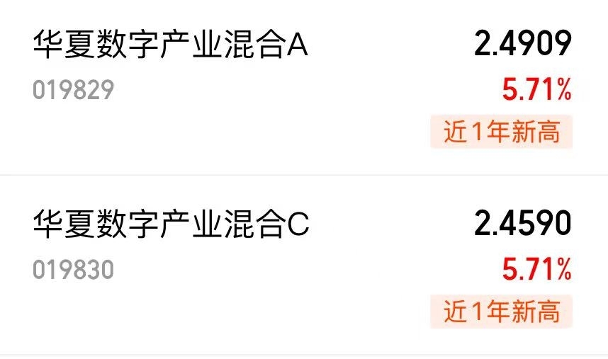 这基昨天创近一年新高啦,怒涨5.71%呢!重仓里的光模块企业实力可以啊,涨起来都很牛!近1年119%,在全市场18000多只基金中排35,值得长期配置,继续冲$华夏数字产业混合C$