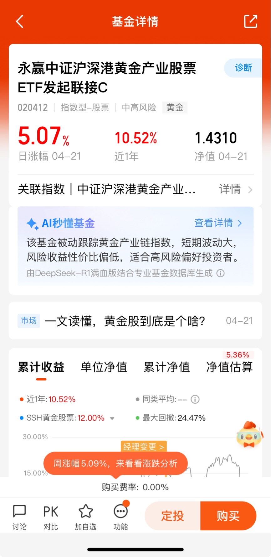 $永赢中证沪深港黄金产业股票ETF发起联接C$一不小心今天黄金又创新高呀,收获5