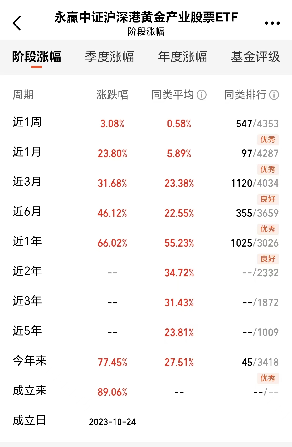 这只规模已突破114亿元的黄金股,之所以能成为市场顶流,关键在于其精准的定位——覆盖沪港深三地黄金采掘、冶炼、零售全链条龙头企业,成为捕捉黄金行情的利器。其独特的金价放大器基因造就了显著的超额收益:当金价上涨时,黄金产业链企业、尤其是金矿开采企业的利润弹性往往比金价本身更大。这是因为开采成本相对固定,金价每上涨1%,企业利润可能增长3%-5%。从业绩数据来看,该产品表现确实亮眼:成立以来上涨89.06%,今年来上涨77.45%,近1年上涨66.02%,近6月上涨46.12%,近三月上涨31.68%!