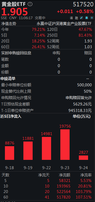 在全球市场波动加剧与降息周期共振的背景下,黄金作为避险资产的配置价值持续凸显,而黄金股凭借“金价上涨+产量扩张”的双轮驱动逻辑,展现出更强的收益弹性。永赢中证沪港深黄金产业股票ETF(517520)及其联接基金作为全市场规模最大的黄金股投资工具,精准捕捉行业上行趋势验证了其策略的有效性,感兴趣的朋友们不妨关注一下。#创业板指创阶段新高 致敬“924行情”#