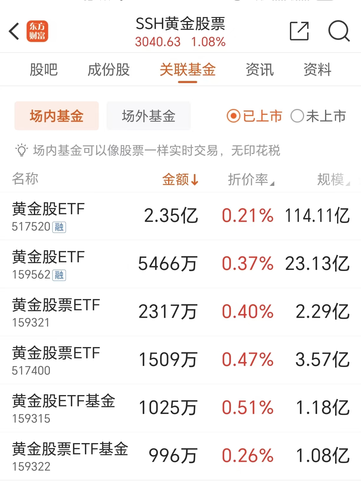 黄金今年以来涨幅已经超过了52%。永赢中证沪港深黄金产业股票ETF及$永赢中证沪深港黄金产业股票ETF发起联接C$(A类:020411/C类:020412)已经连续4天上涨,累计涨幅超6%!