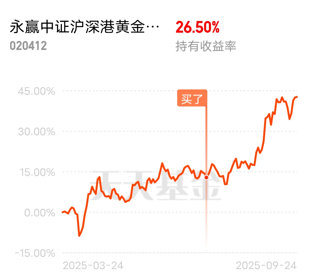 $永赢中证沪深港黄金产业股票ETF发起联接C$看好黄金板块,继续跟着分批布局了