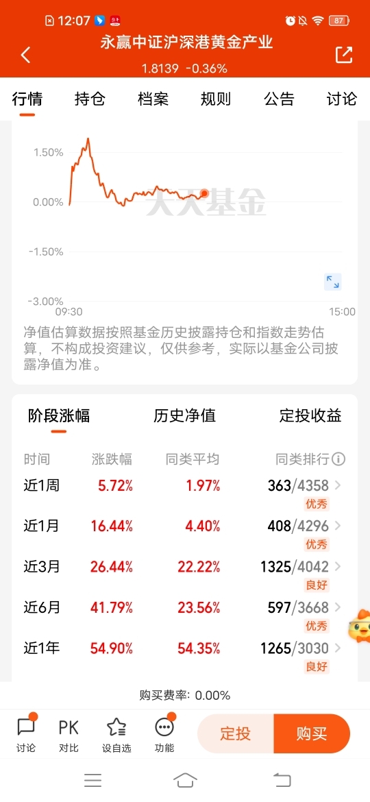 $永赢中证沪深港黄金产业股票ETF发起联接C$黄金股反弹能力强,近一个月涨幅16