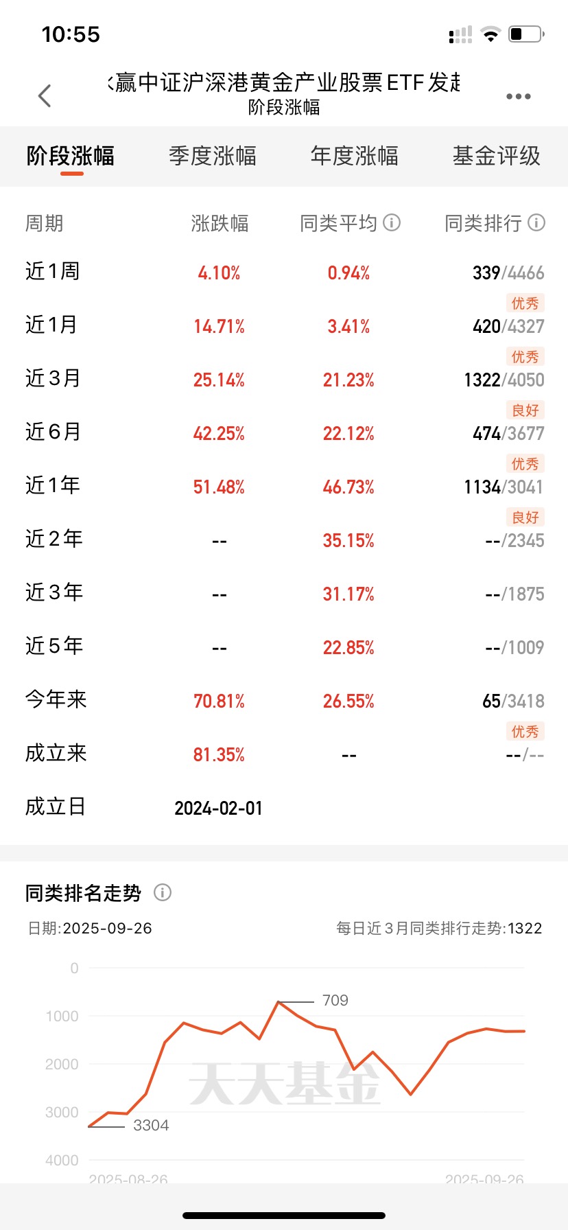 $永赢中证沪深港黄金产业股票ETF发起联接C$ 一键把握黄金产业投资机会,这里又是场外唯一的黄金股ETF指数基金,黄金股作为黄金的放大器,其弹性很强,近一个月14.71%涨幅,近三个月25.14%涨幅,近半年42.25%涨幅,业绩表现优秀稳健,确实不错呀,值得期待了!#金价逼近3800美元!再创历史新高#