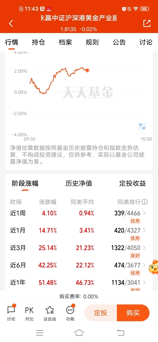 $永赢中证沪深港黄金产业股票ETF发起联接C$这波比较强势,弹性十足的,目前估值
