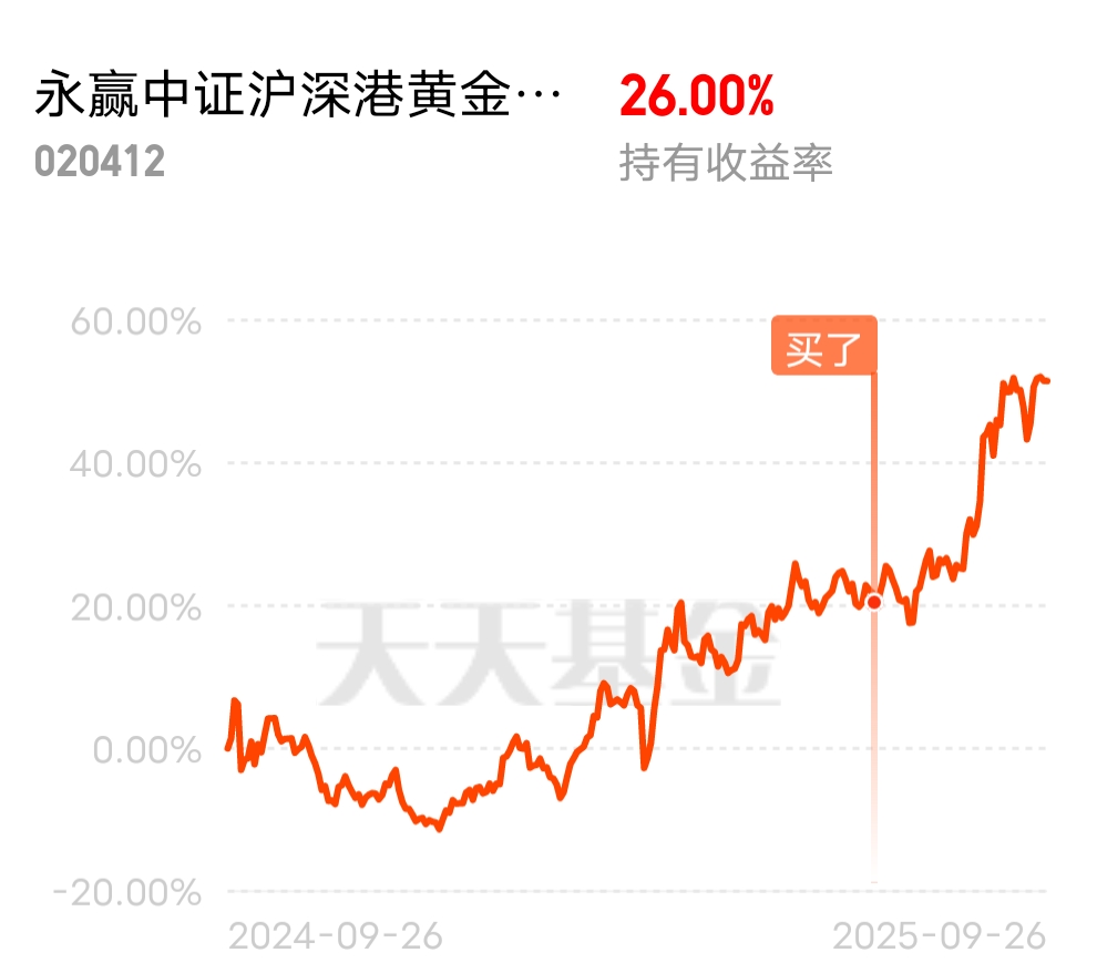 $永赢中证沪深港黄金产业股票ETF发起联接C$黄金今天迎来上涨趋势,看来可以跟着吃肉了
