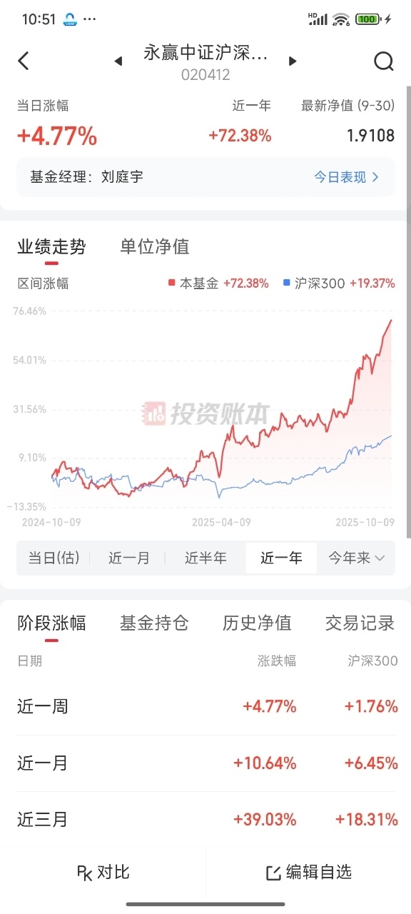 黄金大行情来了,准备上车吃肉,永赢黄金股ETF020412今天估值又大涨4.77%,近一个月收益率1856%,近六个月涨幅47.20%,在同类基金中排名优秀,国庆长假期间黄金是最靓的仔 ,可以准备上了。