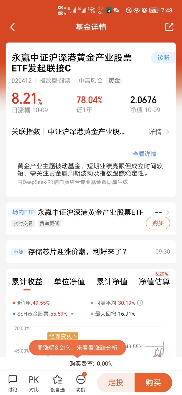 近些年金价不是新高就是在新高的路上,$永赢中证沪深港黄金产业股票ETF发起联接C
