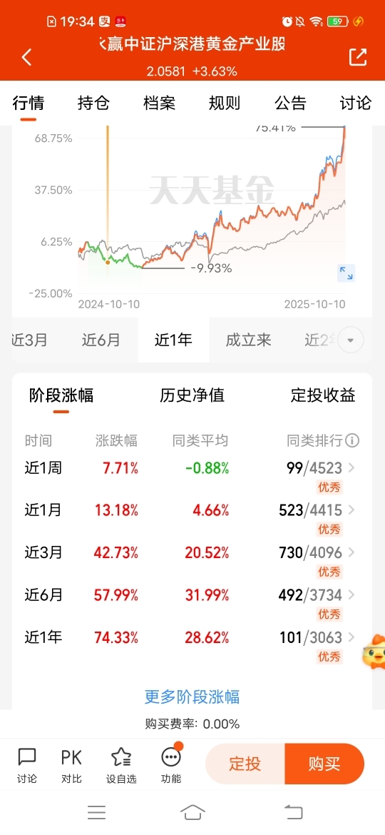 $永赢中证沪深港黄金产业股票ETF发起联接C$ 这波强势反弹,今晚更新涨幅3.63%,黄金股本身估值还不是很高,近一个月涨幅13.18%,近三个月涨幅42.73%,近六个月涨幅57.99%,近一年涨幅74.33%,各个阶段业绩超额,超高弹性,相关黄金,黄金股进一步放大投资收益特征明显!黄金股素有“金价放大器”之称,指数费率低,也挺适合稳健布局。#10月看好哪些投资赛道?等你来分享#