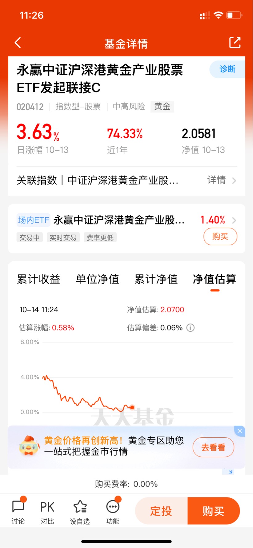 $永赢中证沪深港黄金产业股票ETF发起联接C$ 昨天涨了3.63%,五天四涨,状态不错嘛!近三个月42.73%涨幅,近一年74.33%涨幅,各个阶段业绩表现都优秀的很了!永赢中证黄金股是场外唯一的黄金股ETF联接基金,稀缺性很强,黄金股又是黄金的放大器,其弹性很强,值得期待了!#券商把脉:冲击小于4月 黄金坑再现?#