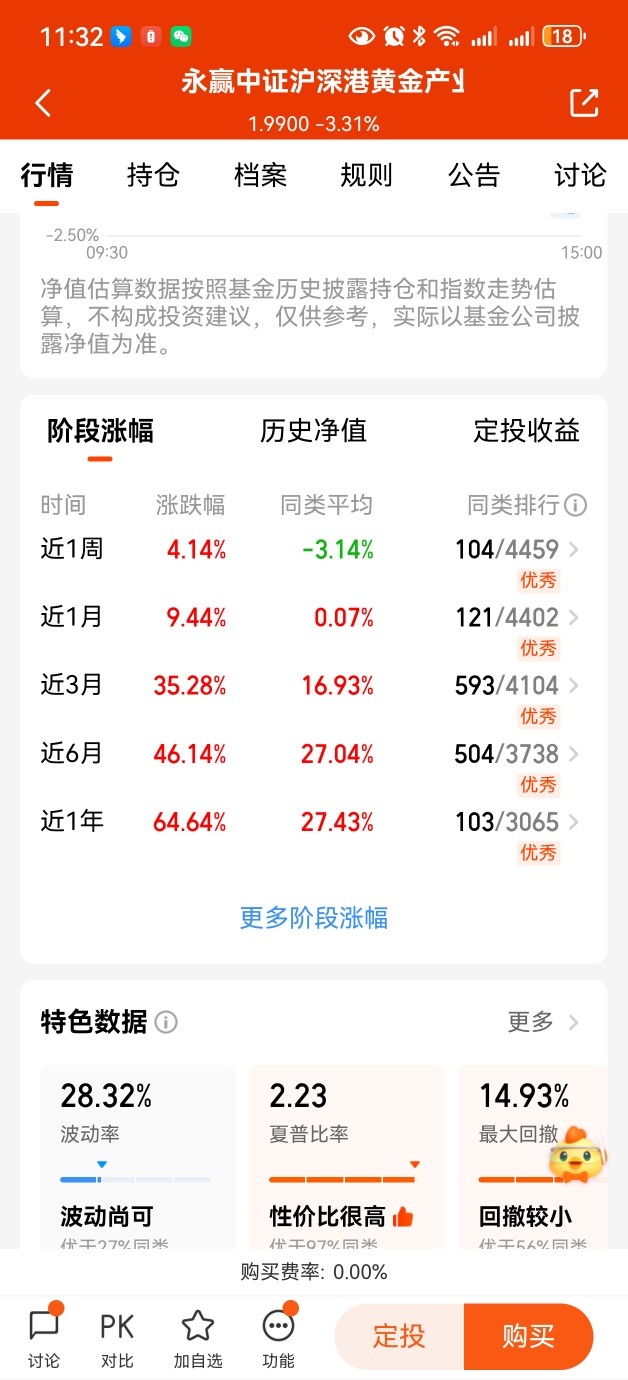 黄金调整,借机布局是个不错的选择。$永赢中证沪深港黄金产业股票ETF发起联接C$