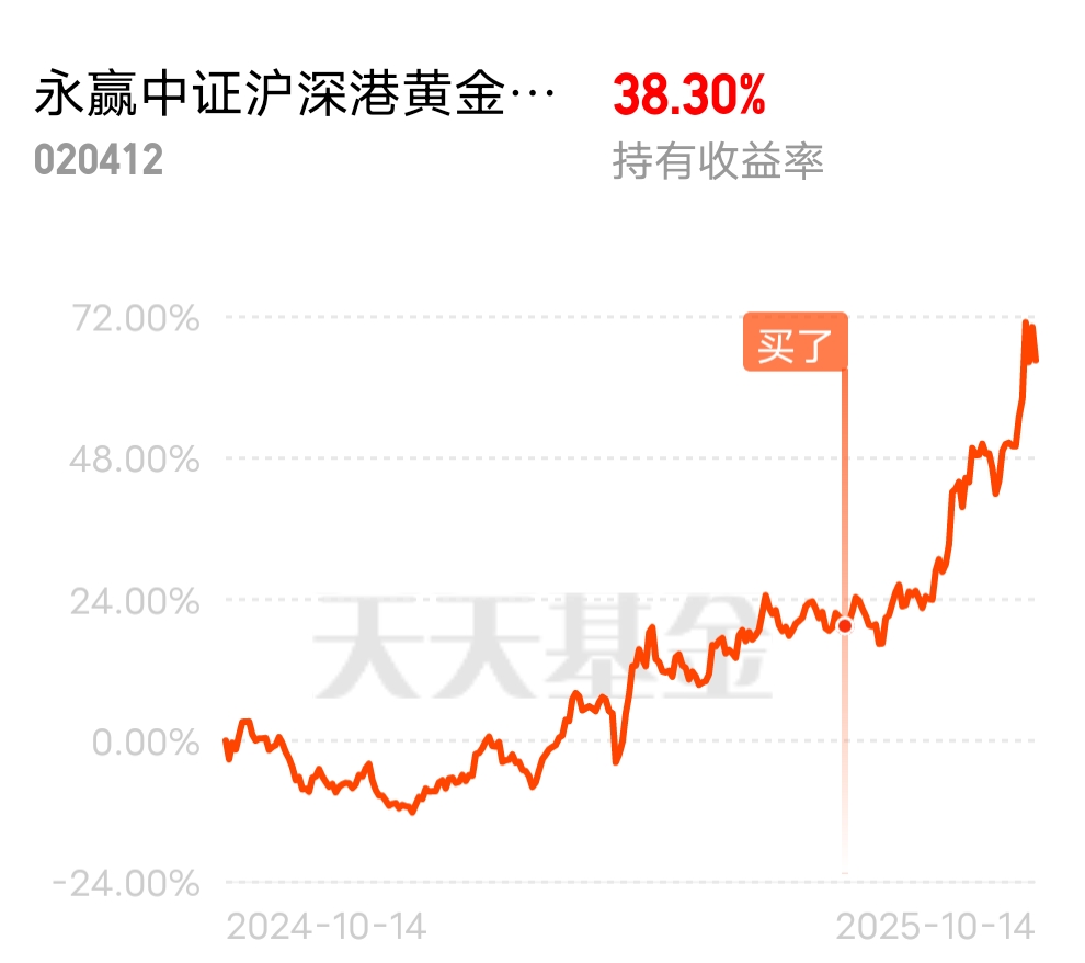 $永赢中证沪深港黄金产业股票ETF发起联接C$表现不错的,黄金股继续上涨趋势,继