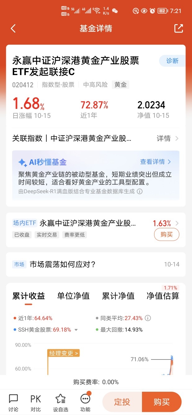 今天还不错,行情反弹,$永赢中证沪深港黄金产业股票ETF发起联接C$上涨1.68