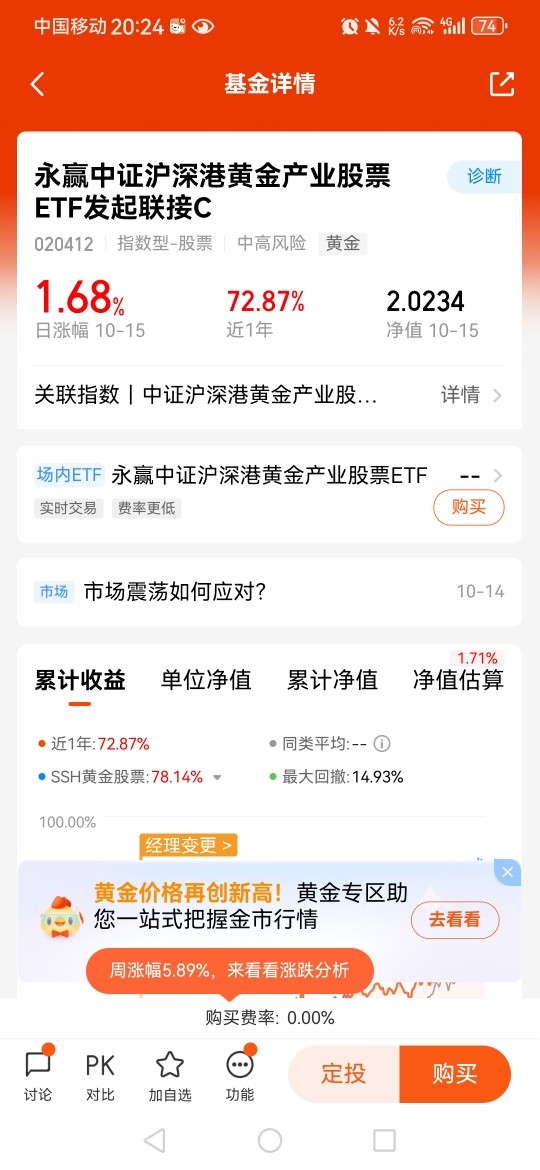 $永赢中证沪深港黄金产业股票ETF发起联接C$ 紧密跟踪中证沪深港黄金股产业股票指数,近一年涨幅+72.87%,是全市场首支黄金股ETF,不仅规模大而且流动性更好,黄金股俗称黄金的放大器,其弹性更强,有一起布局明年黄金行情的嘛,接下来我就看这基的了#10月基金投资策略#