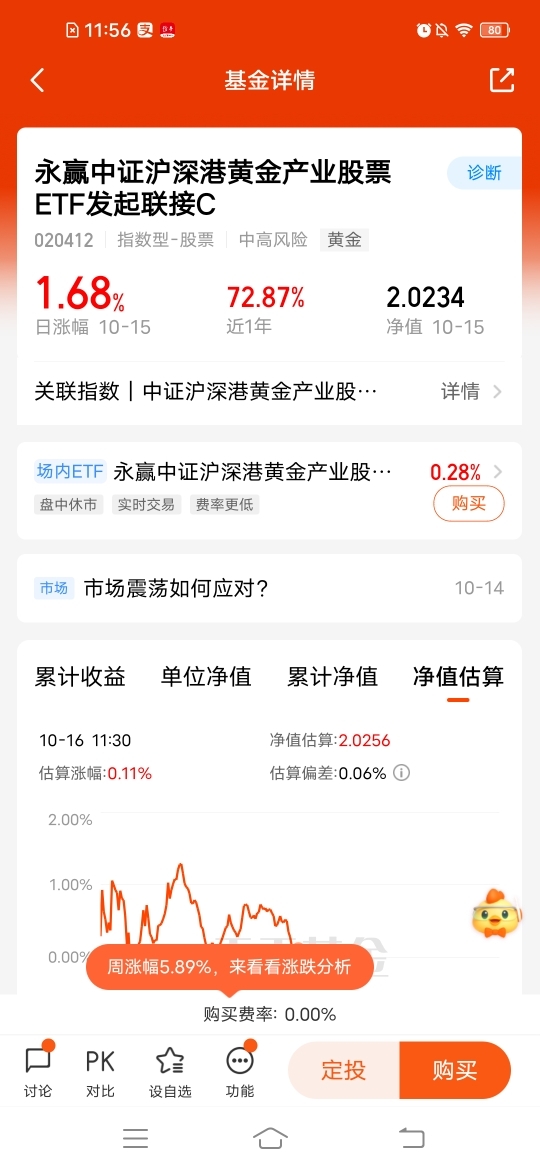 $永赢中证沪深港黄金产业股票ETF发起联接C$这波黄金股挺强势,昨天涨幅1.68
