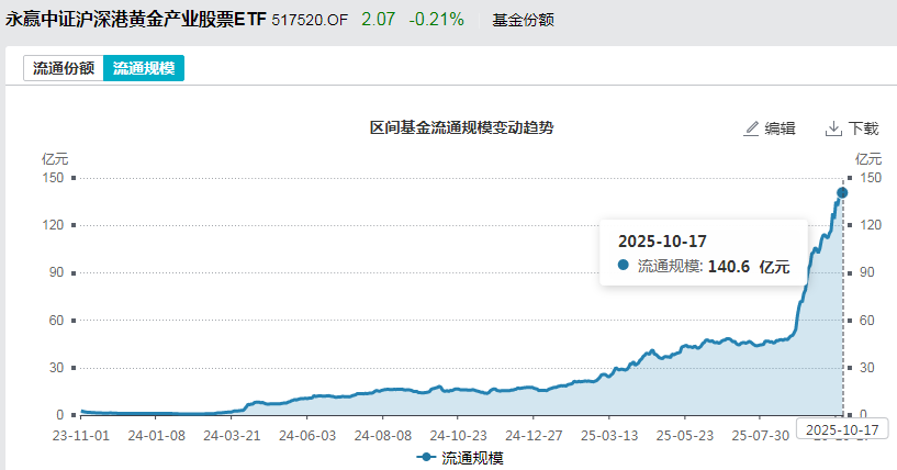 华尔街密集上调2026年底黄金目标价,场内规模最大、流动性最强的永赢中证沪港深黄金产业股票ETF及$永赢中证沪深港黄金产业股票ETF发起联接C$(A类:020411/C类:020412)今天回调,上车正当时,随着资金的持续流入,规模和份额再创新高,最新规模已经达到了140.6亿,始终是同类最高的!